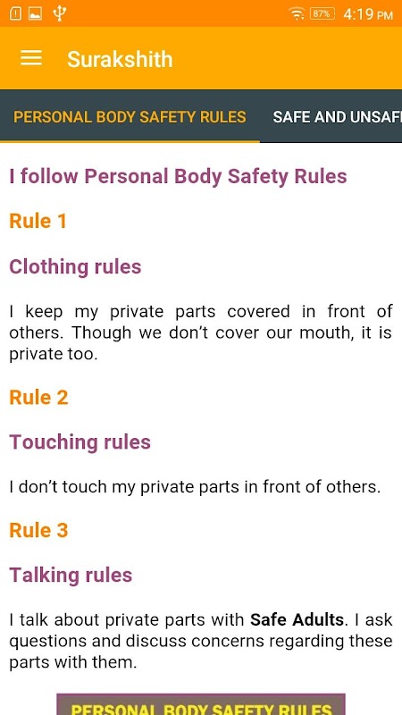 Anak-anak Pribadi Keselamatan App: Aturan, tidak aman Touch, ada Go Tell, Internet Safety