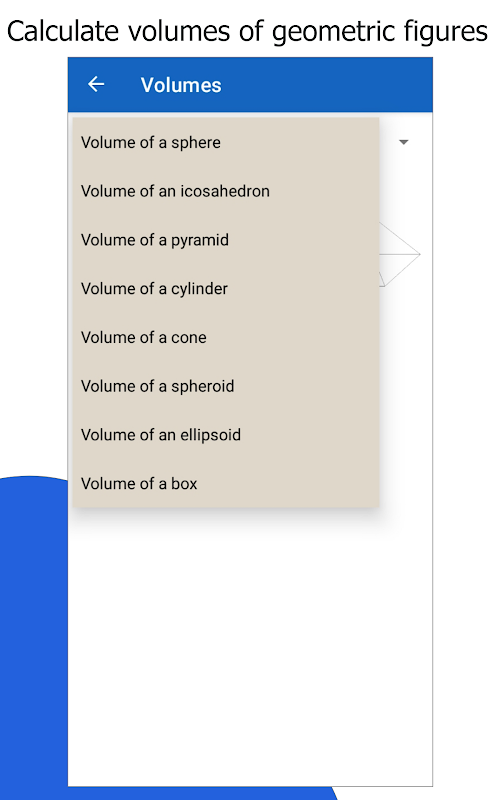 Surface Volume adalah aplikasi multibahasa dan ringan. Ini memungkinkan menghitung luas dan volume figur geometris seperti piramida, pentagon, ikosahedron, kerucut, silinder, kotak, ellipsoid revolusi (bulat), dan ellipsoid tiga sumbu. Untuk setiap figur, Anda dapat melihat representasi visualnya.