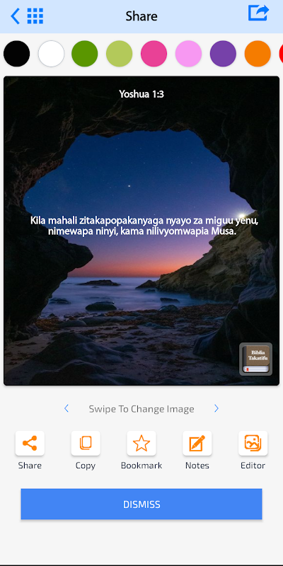 Kami sangat bangga dan senang merilis Alkitab Swahili (Biblia Takatifu) - untuk ponsel Android yang sepenuhnya offline dan dilengkapi dengan fitur ramah pengguna. Aplikasi ini berisi "Perjanjian Lama" dan "Perjanjian Baru" dalam bahasa Swahili. Kami sangat berharap aplikasi ini dapat membuat Anda senang dan lebih bermanfaat dalam membaca Alkitab.