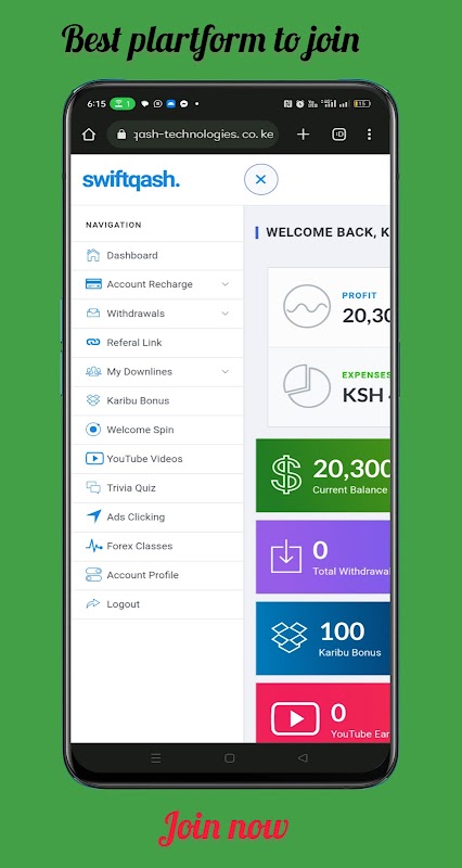 Setiap anggota yang membuat akun di Swiftqash akan mendapatkan Bonus Karibu sebesar 100Ksh.💰〽️