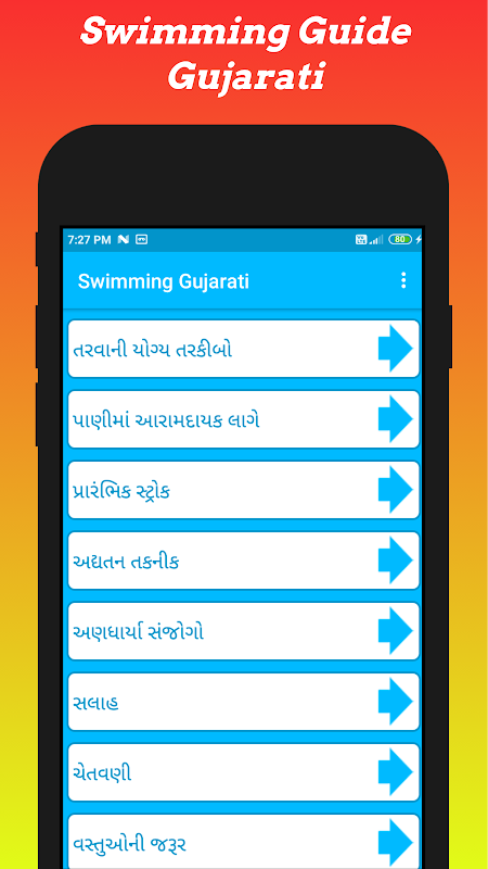 Swimming in English, Swimming in Hindi, Swimming in Gujarati