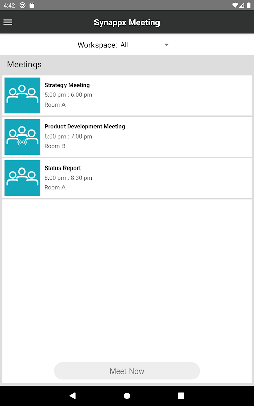 - Synappx Meeting can automatically update the calendar and free up the meeting room if the meeting should end early.