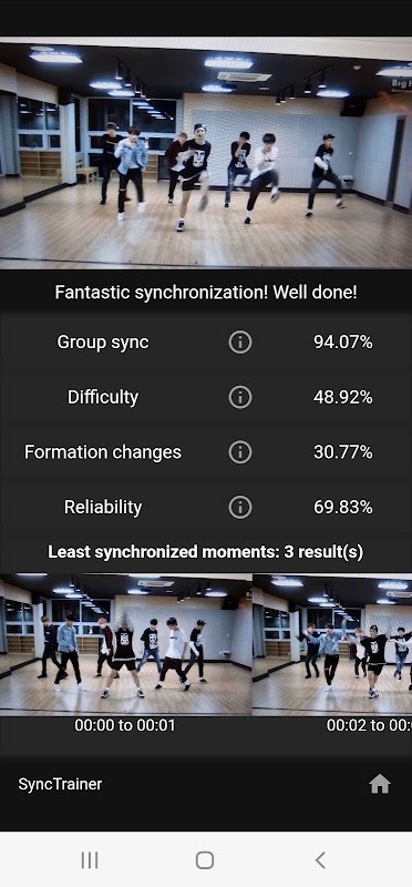 3. Once you have selected the video, SyncTrainer will generate analytics about the movement in terms of synchronization, move difficulty and formation patterns.