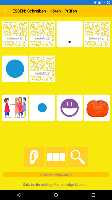 Kartu sintaks adalah kesempatan bagi anak-anak dari usia 4 tahun dan orang-orang dengan sedikit pengetahuan bahasa Jerman untuk memahami kalimat sederhana dengan bantuan gambar dan output suara, tetapi juga untuk secara aktif menyusunnya. Mereka memungkinkan penemuan holistik bahasa Jerman dan membuat pola tata bahasa dan rencana konstruksi kalimat terlihat.