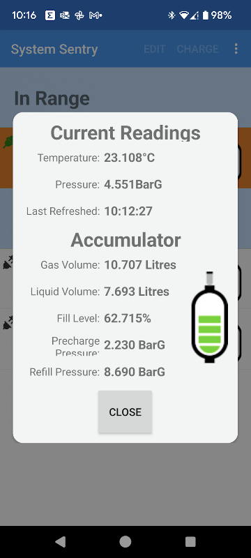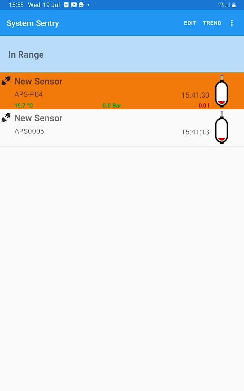 Pembacaan tekanan dan suhu waktu nyata dari sensor BluetoothLE kami.