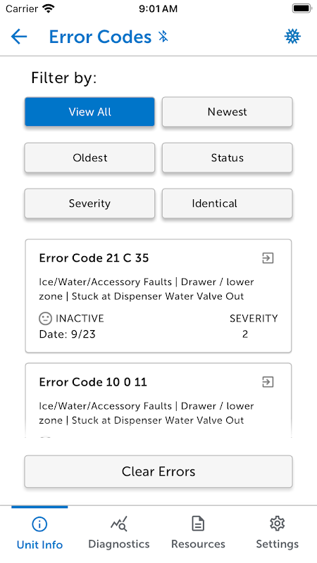 ◦ Lihat kode kesalahan, pembacaan suhu, dan status sistem secara instan.