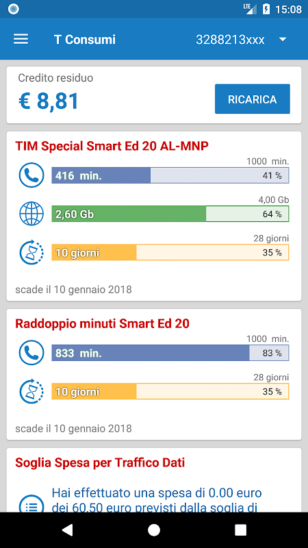 Questa app è la versione Android di Tim Consumi. Se desideri l'app Tim ufficiale, cercala sullo store con il nome MyTIM Mobile.
