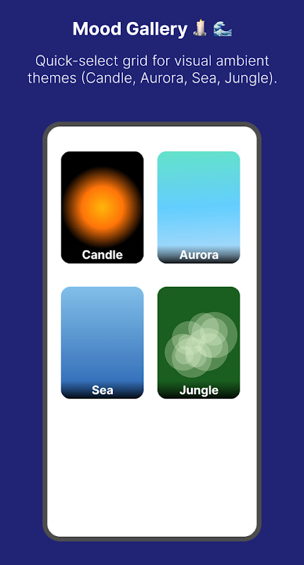 - Suara yang Menenangkan: Perpustakaan audio untuk suara latar ambient dengan pemutaran dan tombol favorit. 🎵 🌧️