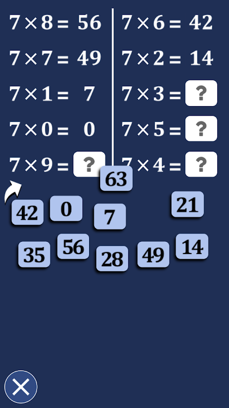 Aplikasi Table7x gratis namun sangat efektif untuk mengerjakan dan menghafal tabel perkalian dengan 7. Desain baru, permainan baru, animasi baru. Kini, aplikasi Table7x menawarkan 5 permainan: