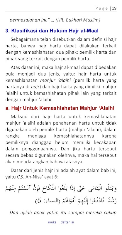 Aplikasi Android ini adalah Penjelasan Silsilah Tafsir Ahkam QS. An-Nisa’ 5-6 (Hajr Harta) Oleh Isnan Ansory. Dalam format Pdf.