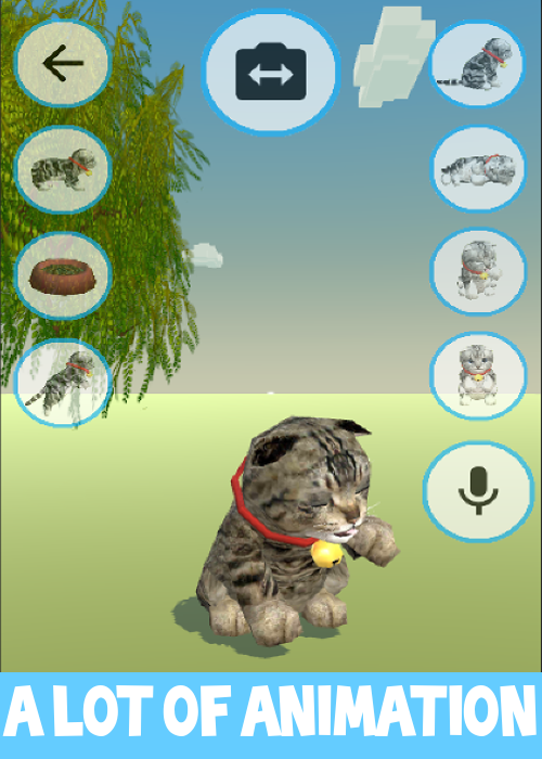 - Cat dengan puluhan animasi (Play, Langsung, Makan, Cry, Run, Duduk dan banyak lagi).