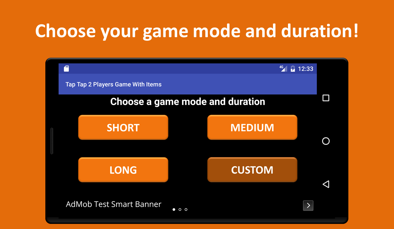Dalam permainan 2 pemain ini, Anda harus bersaing dengan teman-teman Anda untuk menentukan siapa yang terbaik di dunia penyadapan untuk smartphone layar (jika pernah ada di dunia seperti itu). Cukup memilih tingkat Anda ingin bersaing dengan teman Anda dalam hal Tap Tap (Short - 10 detik untuk menekan; Medium - 20 detik; Panjang - 30 detik) dan tekan jalan sepanjang jalan menuju kemuliaan. Orang yang dapat menekan paling akan memenangkan Tap Tap permainan dan akan memiliki hak untuk membual tentang hal itu!