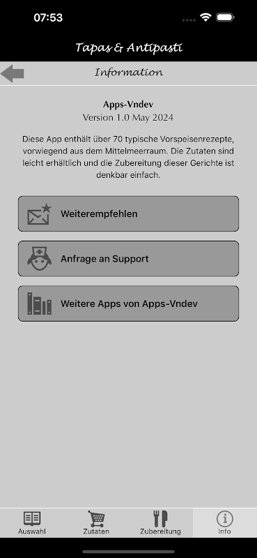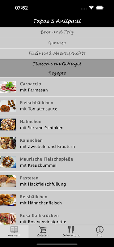 Aplikasi ini berisi lebih dari 70 resep makanan pembuka khas, terutama dari wilayah Mediterania. Bahan-bahannya sudah tersedia dan menyiapkan hidangan ini sangat mudah.