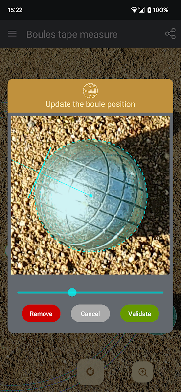 3. - Urutan bola ditampilkan. Jika dongkrak atau boule belum dikenali, Anda dapat memilihnya secara manual.