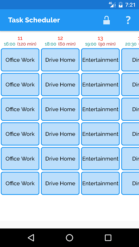 Task Scheduler app is used for scheduling daily and weekly tasks by specifying task start time and task length