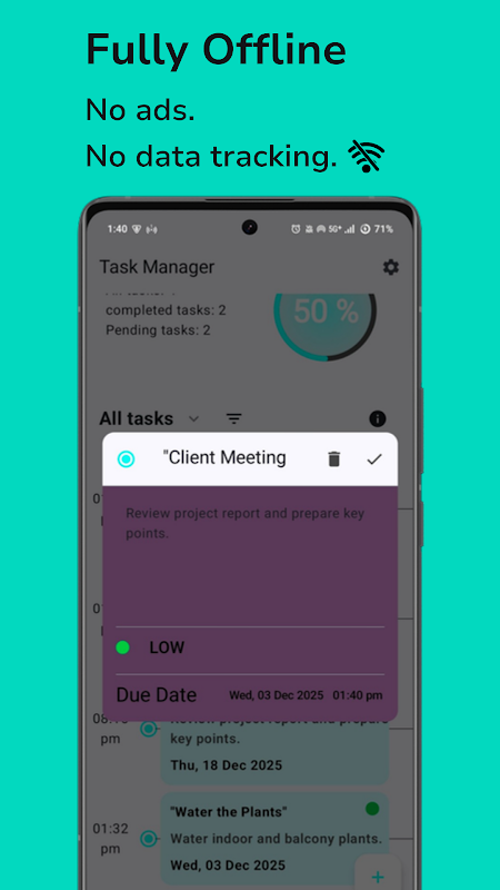 Semua tugas disimpan secara lokal di perangkat Anda.