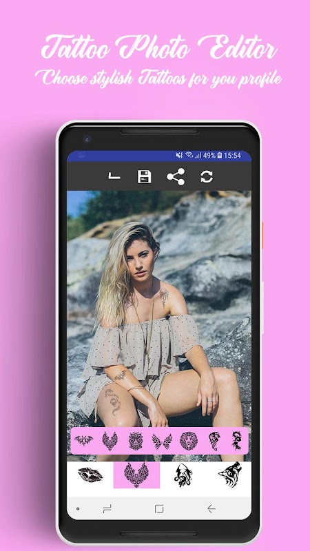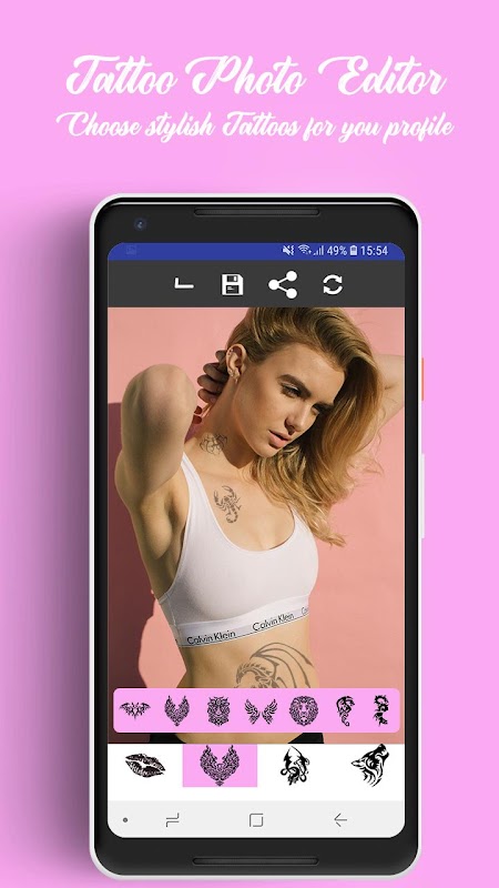 By using this tattoo photo editor / Tottoo my body you can edit photo or paste tattoo anywhere you want on your body then you can easily share this tattoo edited picture to your friends and on any social media account like facebook, twitter, instagram etc..