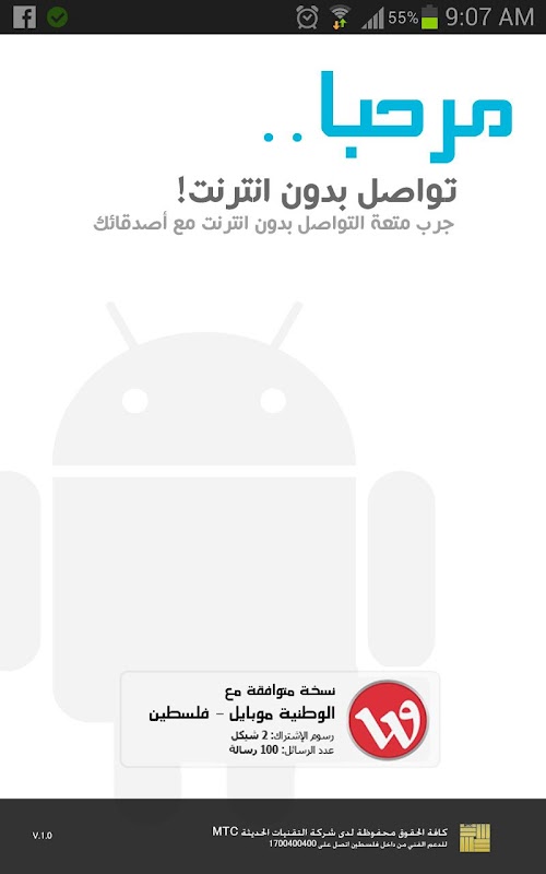 هذه النسخة من البرنامج متوافقة مع شبكة وطنية موبايل - فلسطين
