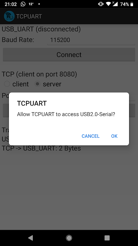 Aplikasi ini memungkinkan Anda menghubungkan adaptor USB UART (Serial) ke soket TCP, untuk mengirim dan menerima data.