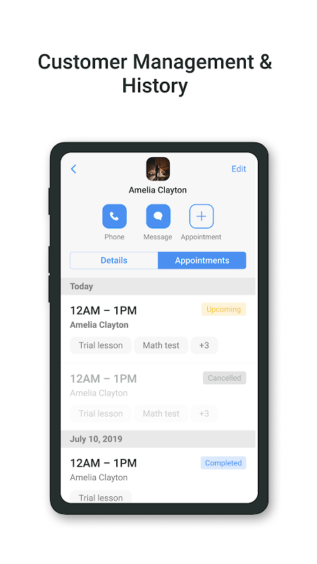 Dapatkan informasi tentang setiap siswa dalam satu klik, lihat sejarah pelajaran mereka dan janji temu yang akan datang.