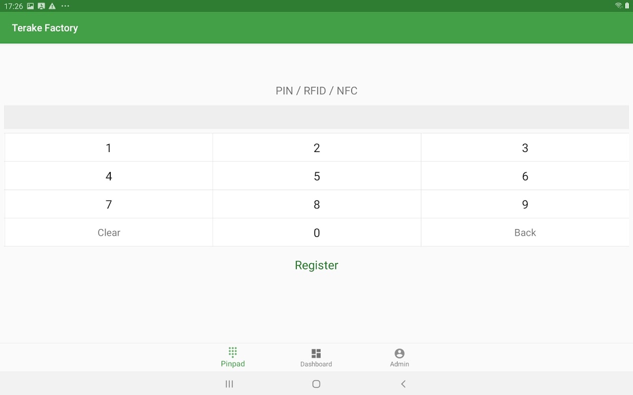 Pinpad adalah titik masuk utama bagi pengguna. Di sana Anda dapat memasukkan PIN, menggeser TAG NFC (jika didukung oleh perangkat) atau menggunakan kartu RFID dengan pembaca eksternal.