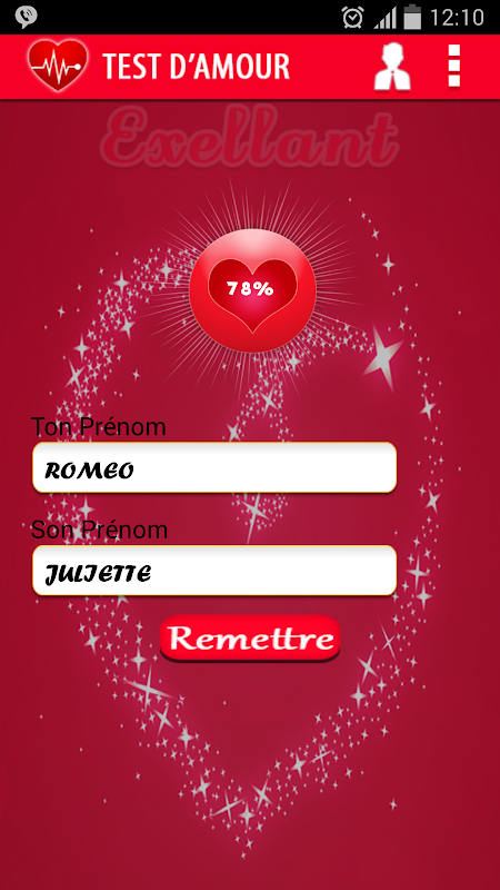 C'est très simple ! Vous avez deux champs ici haut. Rentrez votre prénom dans le premier champ, et le prénom de votre amoureux dans le second champ. Cliquez sur le bouton Tester, et le tour est joué !