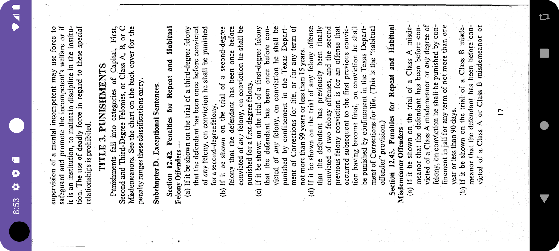 Sangat mudah untuk dinavigasi. Bab dan judul dibagi secara bijak. Kapan pun Anda perlu mengetahui sesuatu tentang . Dalam aplikasi hukum pidana Texas ini Anda akan mendapatkan semua judul, undang-undang zat yang dikendalikan, dan kode keluarga.