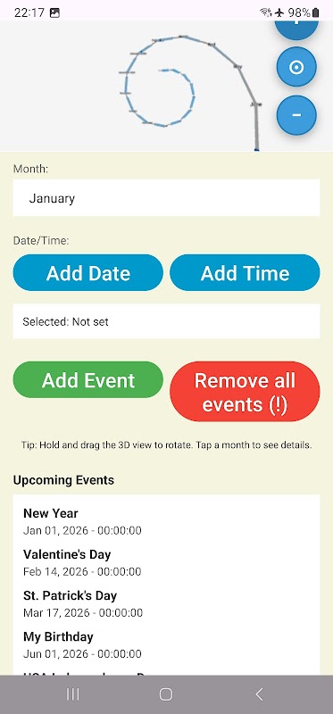 Tambahkan, kelola, dan tindak lanjuti acara berbasis waktu Anda yang akan datang pada garis waktu 3D? Fitur kedaluwarsa sangat cocok untuk acara yang bergantung pada waktu, ulang tahun, daftar tugas, dan acara berulang untuk dipantau dan dikelola pada antarmuka 3D.