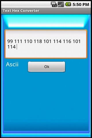 Telepon Anda adalah program yang memungkinkan Anda untuk beralih di antara pada sistem coding Text-Ascii-Hex-Binary.