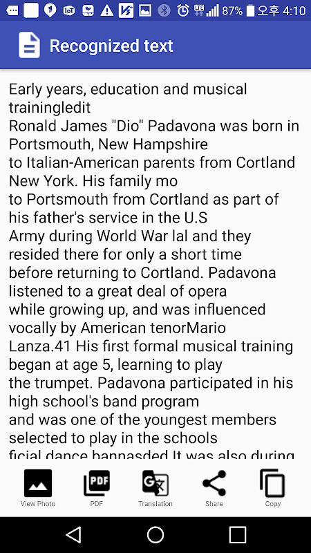 - Copy the recognized text to the clipboard and paste it into the document editor app.