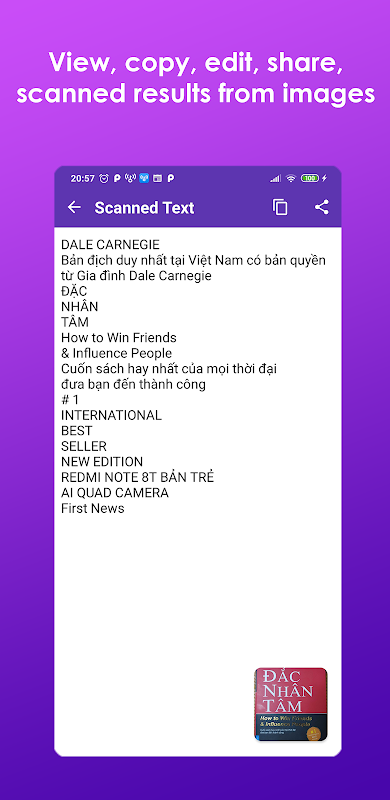 • Bagikan seluruh teks yang diekstrak ke salah satu aplikasi Anda.