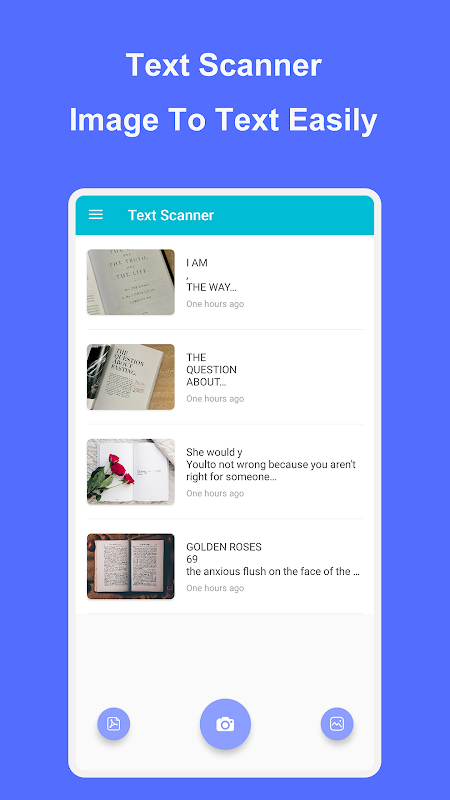 Mengekstrak teks pada gambar. Pindai galeri, riwayat dengan teks dan gambar.