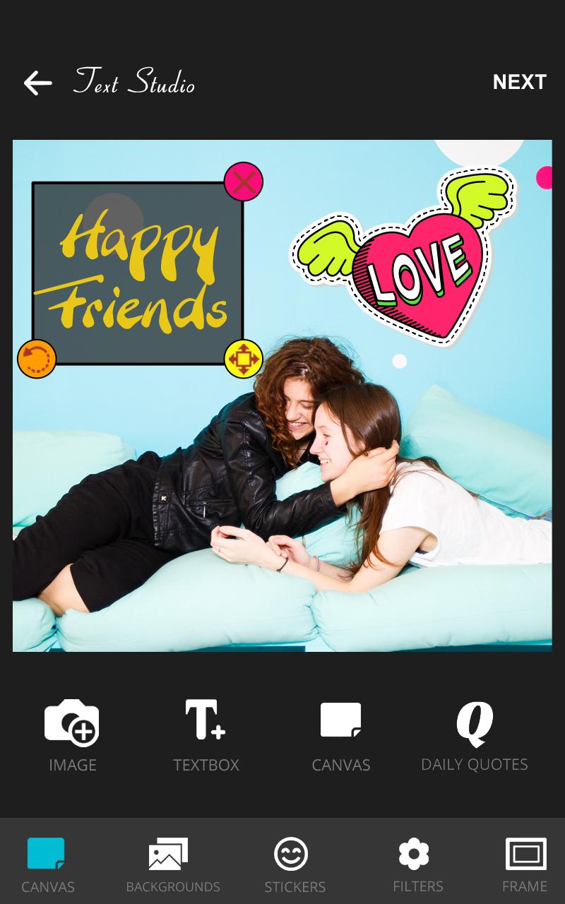 Text Studio adalah salah satu aplikasi editor foto font terbaik, yang memungkinkan Anda menambahkan font bergaya dengan mudah ke dalam gambar. Ini adalah aplikasi pembuat gambar teks yang menakjubkan, yang mengekspresikan emosi Anda dalam bentuk kata-kata favorit Anda. Sekarang, Anda bisa menambahkan teks pada foto / gambar dengan aplikasi editor teks yang mengagumkan dan mudah ini.