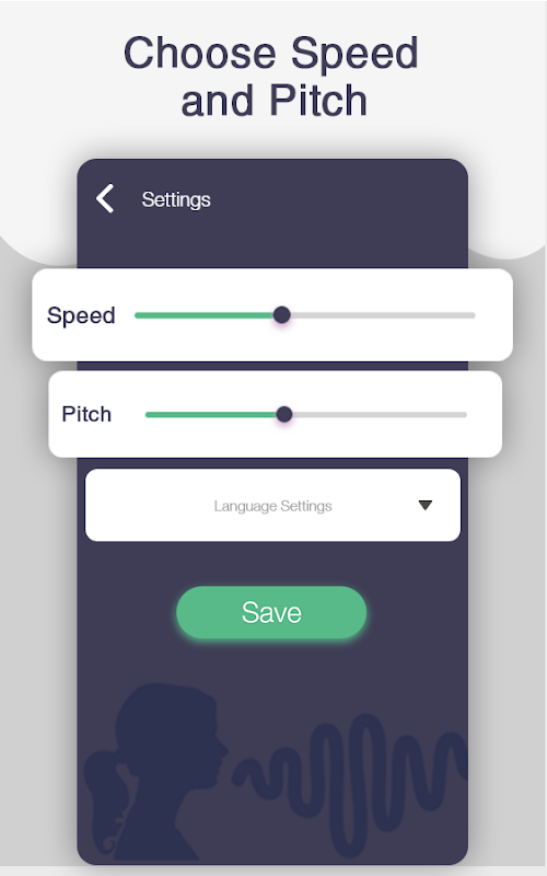 Easily control volume, and pitch of speech generator which you can also reset to previous settings.
