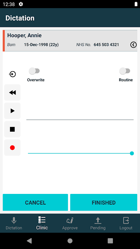 • Memilih pasien memungkinkan dikte berikut dihubungkan langsung ke klinik Anda saat ini
