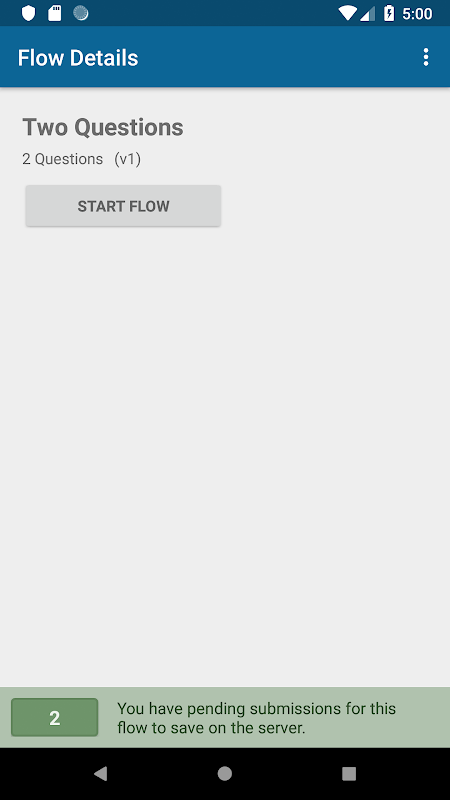 Sekarang dengan textit Surveyor, Anda dapat menggunakan kuat secara offline mesin aliran textit untuk menangkap survei di tanah dengan kebutuhan koneksi ponsel. Anda masih bisa menggunakan editor aliran online untuk merancang survei Anda, setelah Anda men-download ke ponsel Anda, Anda dapat mengambil di mana saja di dunia tanpa khawatir tentang konektivitas. Bila Anda siap, Anda bisa mengirimkan hasil aliran Anda ketika Anda berada di kantor.