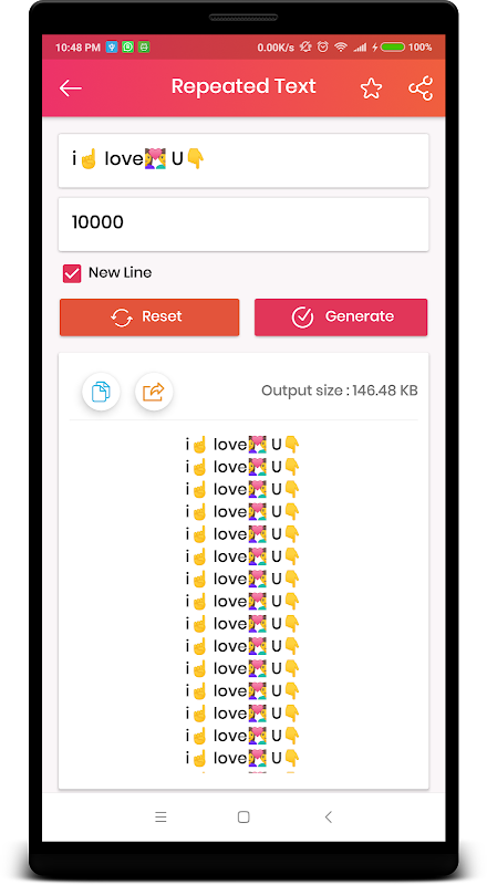 - TextFS app provides best functionality to repeat text tiles and supermoji as per your requirement.