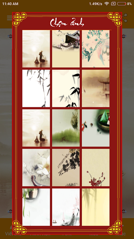 - Chọn hình nền Tết, hình nền xuân, hình nền mang phong cách thầy đồ cho ứng dụng.