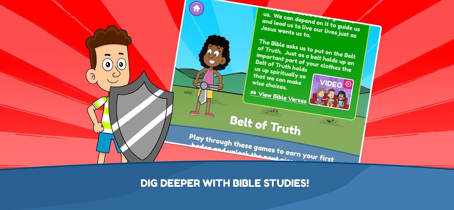 Bersiaplah untuk mengenakannya! Armor of God adalah aplikasi interaktif untuk anak-anak yang membantu mereka mempelajari prinsip-prinsip yang diajarkan dalam Efesus 6:10-20.