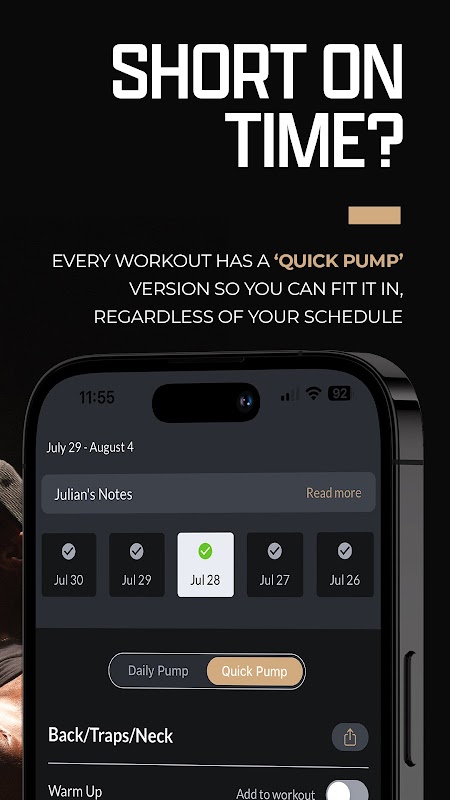 Dengan penekanan pada waktu di bawah tekanan, repetisi tinggi, repetisi rendah, dasar-dasar binaraga klasik, dan variasi baru, The Daily Pump dirancang untuk benar-benar mengisolasi otot utama yang bekerja dan memungkinkan Anda membuat koneksi pikiran-otot sebaik mungkin.