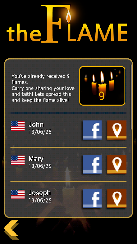 Você poderá ainda ver a lista de pessoas que compartilharam a CHAMA com você e até entrar em contato com elas via Facebook, se desejar.