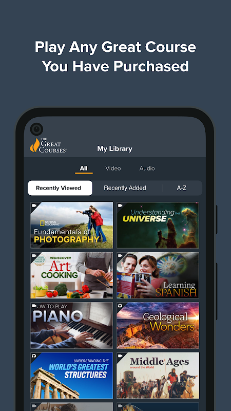 The Great Courses menghadirkan profesor terhebat di dunia kepada jutaan orang yang ingin mempelajari lebih dalam tentang mata pelajaran yang paling mereka minati. Tidak ada ujian. Tidak ada pekerjaan rumah. Tidak ada jadwal. Hanya dunia pengetahuan yang tersedia kapan saja, di mana saja, melalui video atau audio. Gunakan aplikasi ini untuk: