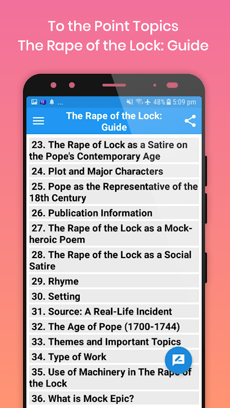 This Guide app works both online and offline, and contains 36 basic topics about one of the famous poems of Alexander Pope, The Rape of the Lock.
