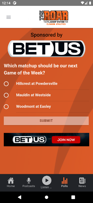 Lihat aplikasi baru untuk The Roar FM, stasiun radio olahraga lokal utama di negara bagian Carolina Selatan. Sebagai stasiun unggulan untuk Clemson Athletics, WCCP FM disiarkan langsung dan lokal setiap hari kerja dari pukul 06:00 hingga 19:00.