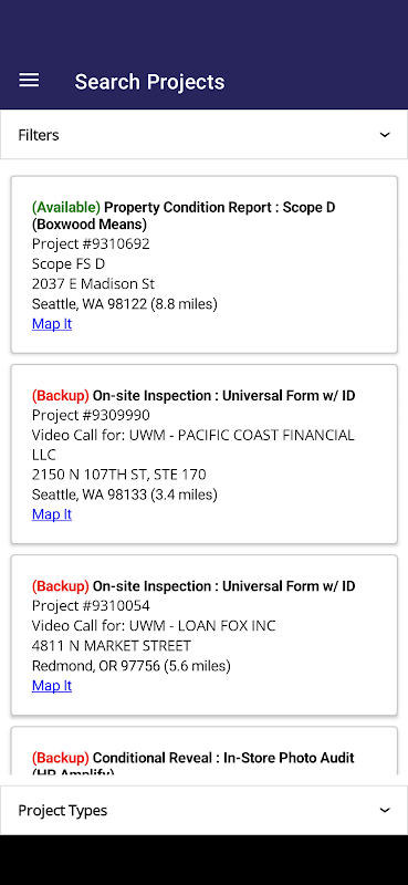 - Temukan proyek yang tersedia berdasarkan lokasi Anda saat ini, kode pos tertentu, atau alamat rumah Anda.