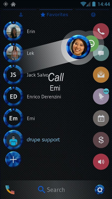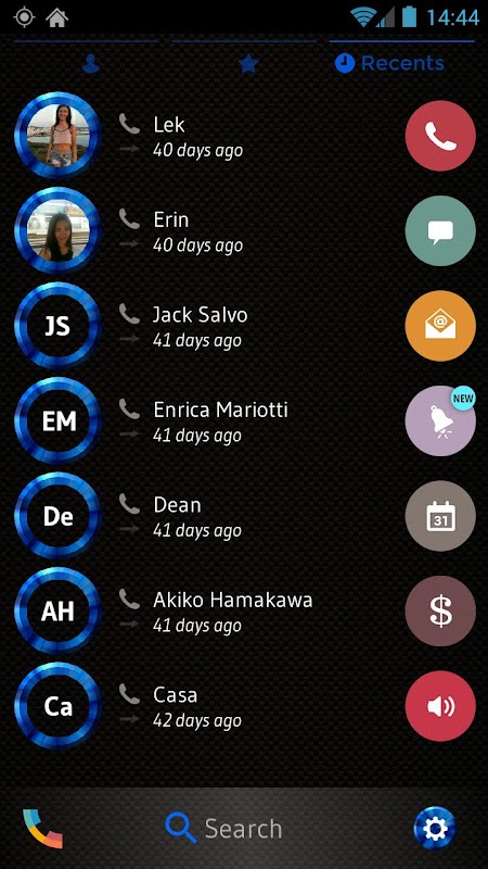 Kontak & Dialer oleh adalah gratis, cerdas dan berwarna-warni dialer penggantian aplikasi untuk Android yang dapat mengubah penampilan dengan banyak tema gratis. Dengan hanya satu babatan, membawa kontak dan aplikasi komunikasi ke satu layar.