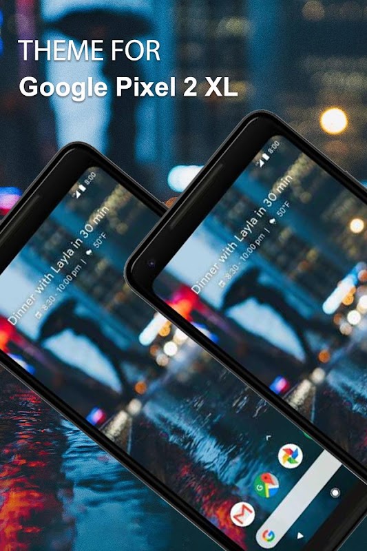 Google Pixel 2 XL Theme menawarkan tampilan dan nuansa baru yang bergaya untuk ponsel Anda yang sudah ada dengan tema-tema menarik dari Google Pixel 2 XL.
