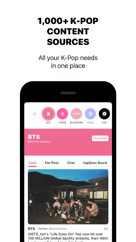 theQoos delivers Kpop news, photos, memes and music your way. Select your favorite kpop groups and idols to follow and theQoos will create a personalized feed of content to keep you connected. We can even recommend trending artists and content just for you! theQoos is your gateway to the Kpop universe.