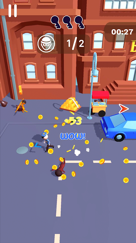 Controls: Drag and move to control directions. Tap to spring into action and tackle the thief.