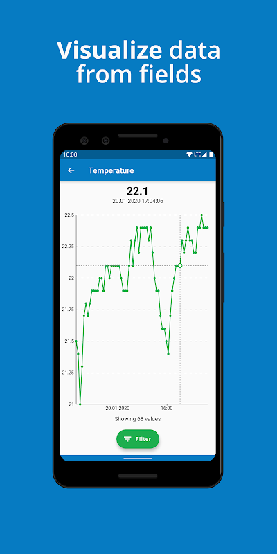Dengan ThingViewer Anda dapat dengan mudah mengakses dan memvisualisasikan data dari saluran ThingSpeak ™. Aplikasi mendukung saluran publik dan pribadi, untuk saluran pribadi Anda harus memberikan "kunci baca api".